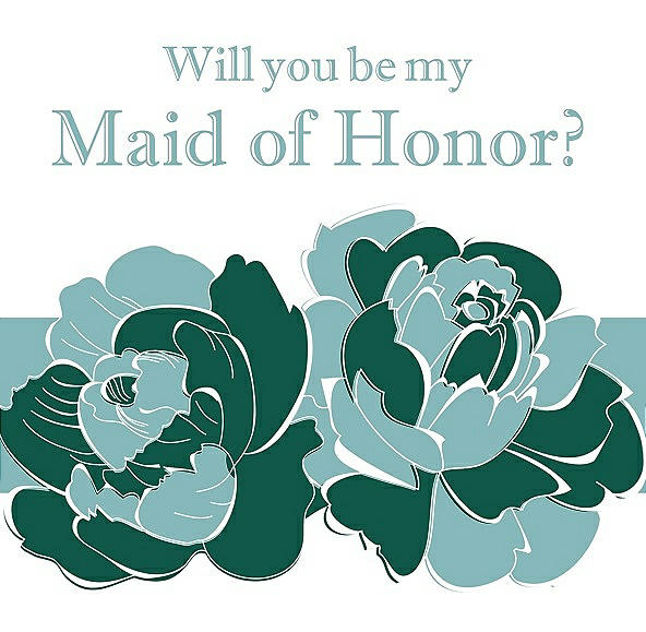 Will You Be My Maid of Honor Card - 2 Color Flowers in Hunter Green & Seaside
