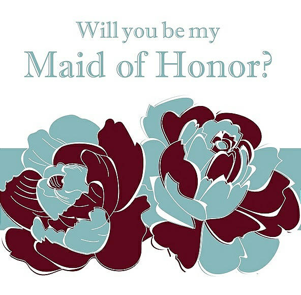 Will You Be My Maid of Honor Card - 2 Color Flowers in Garnet & Seaside