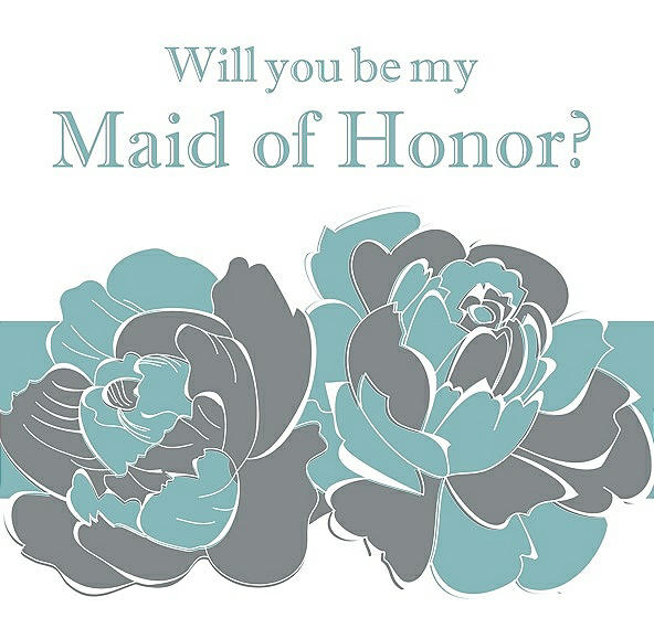 Will You Be My Maid of Honor Card - 2 Color Flowers in Pewter & Seaside