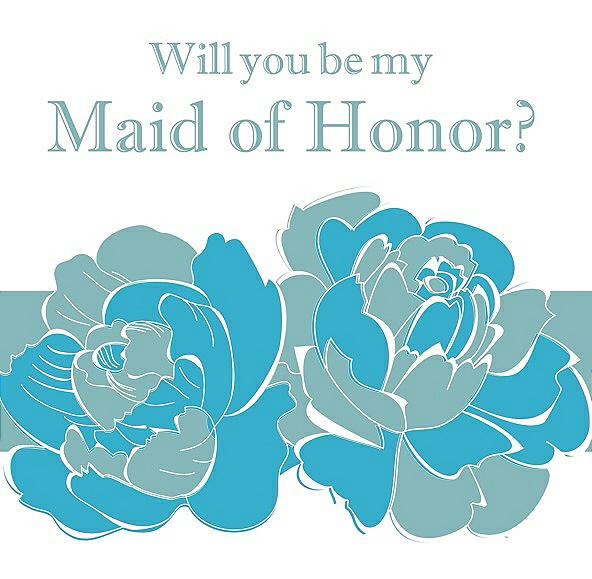 Will You Be My Maid of Honor Card - 2 Color Flowers in Turquoise & Seaside