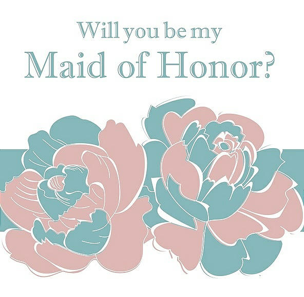 Will You Be My Maid of Honor Card - 2 Color Flowers in Petal Pink & Seaside
