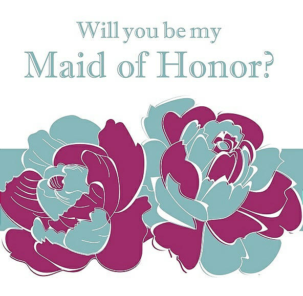 Will You Be My Maid of Honor Card - 2 Color Flowers in Watermelon & Seaside