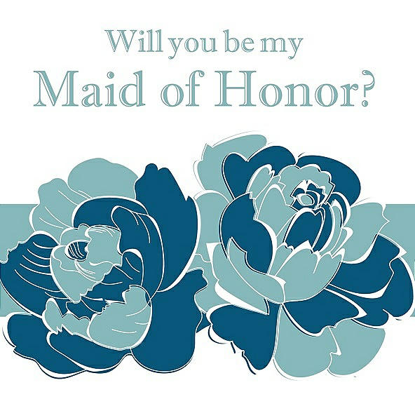 Will You Be My Maid of Honor Card - 2 Color Flowers in Ocean Blue & Seaside