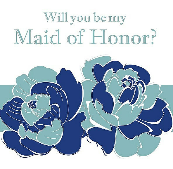 Will You Be My Maid of Honor Card - 2 Color Flowers in Sapphire & Seaside
