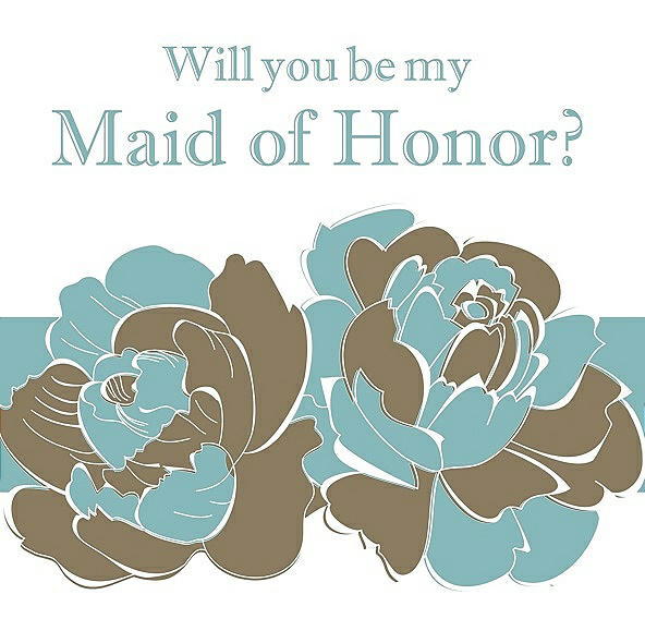 Will You Be My Maid of Honor Card - 2 Color Flowers in Antique Gold & Seaside
