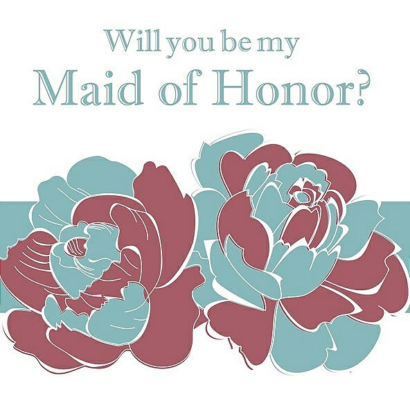 Will You Be My Maid of Honor Card - 2 Color Flowers in Spanish Rose & Seaside