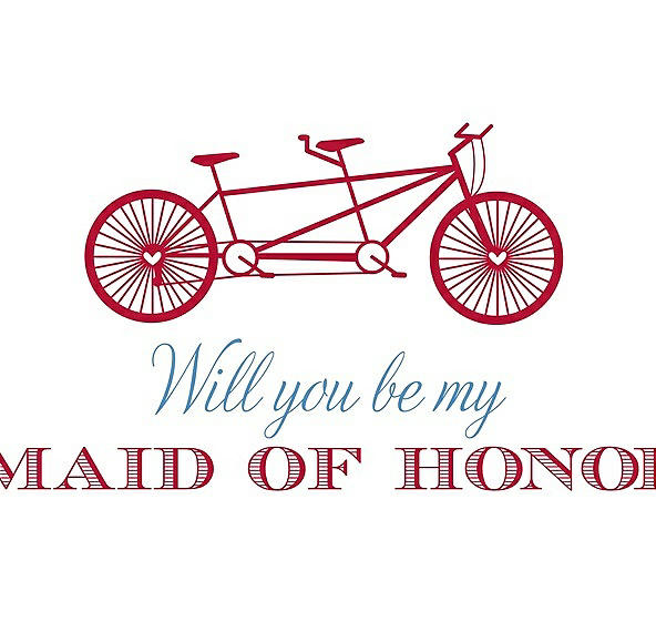 Will You Be My Maid of Honor - Bike in Flame & Cornflower