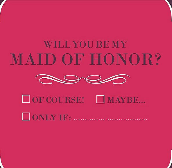 Will You Be My Maid of Honor Card - Checkbox in Pantone Honeysuckle & Italian Plum