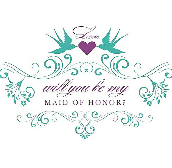 Will You Be My Maid of Honor Card - Classic in Pantone Turquoise & Orchid