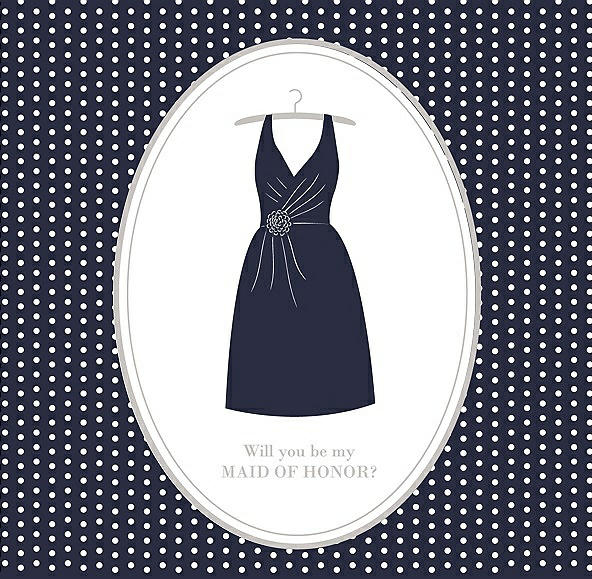 Will You Be My Maid of Honor Card - Dress in Navy Blue & Oyster