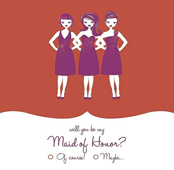 Will You Be My Maid of Honor Card - Girls Checkbox in Fiesta & Persian Plum