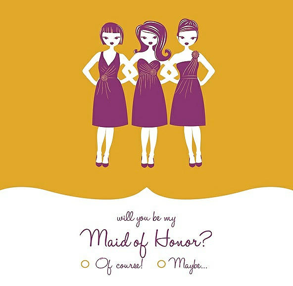Will You Be My Maid of Honor Card - Girls Checkbox in Mango & Persian Plum