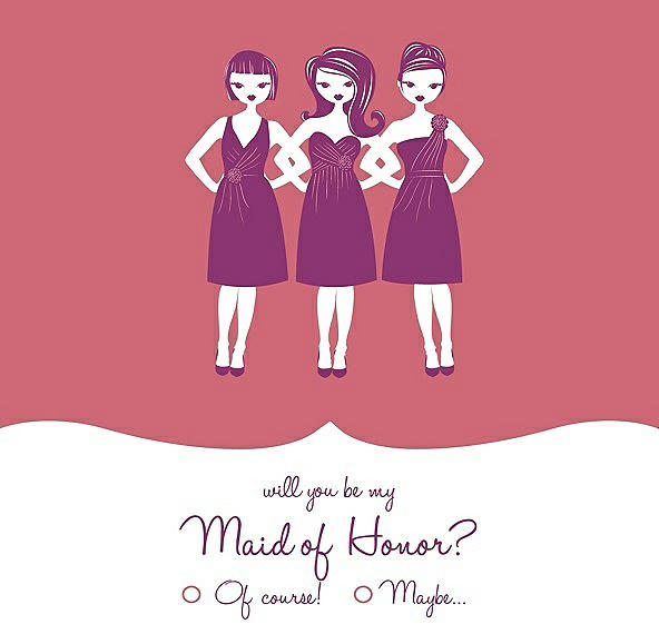 Will You Be My Maid of Honor Card - Girls Checkbox in Papaya & Persian Plum