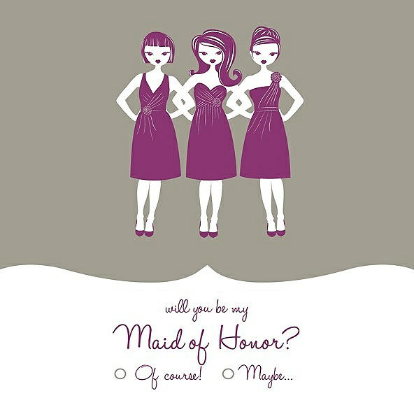 Will You Be My Maid of Honor Card - Girls Checkbox in Twig & Persian Plum