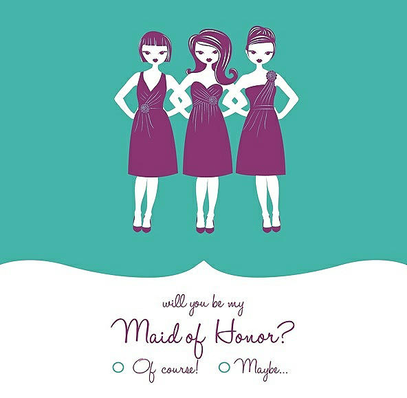 Will You Be My Maid of Honor Card - Girls Checkbox in Pantone Turquoise & Persian Plum
