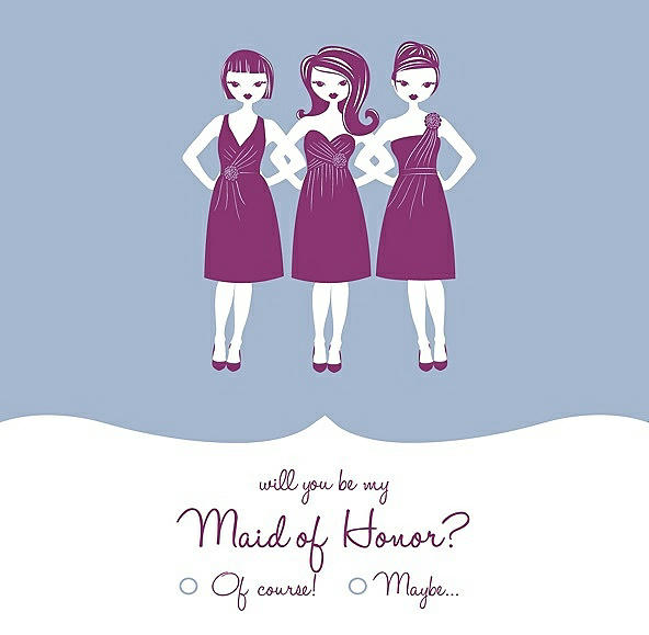Will You Be My Maid of Honor Card - Girls Checkbox in Cloudy & Persian Plum