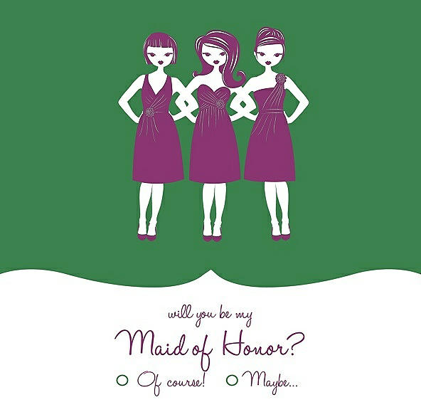 Will You Be My Maid of Honor Card - Girls Checkbox in Ivy & Persian Plum