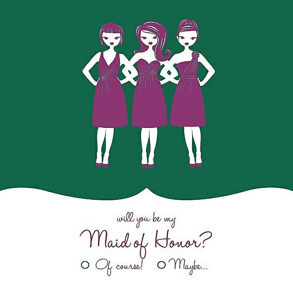 Will You Be My Maid of Honor Card - Girls Checkbox in Pine Green & Persian Plum