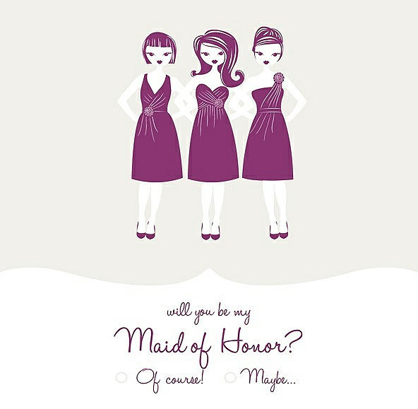 Will You Be My Maid of Honor Card - Girls Checkbox in Ivory & Persian Plum