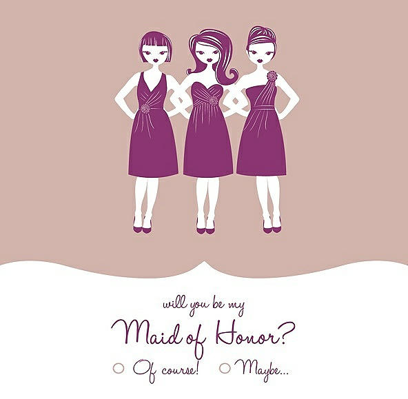 Will You Be My Maid of Honor Card - Girls Checkbox in Pearl Pink & Persian Plum