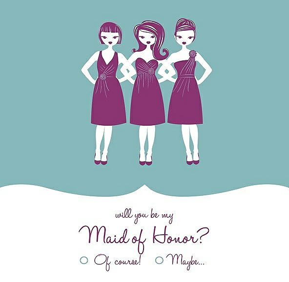 Will You Be My Maid of Honor Card - Girls Checkbox in Seaside & Persian Plum