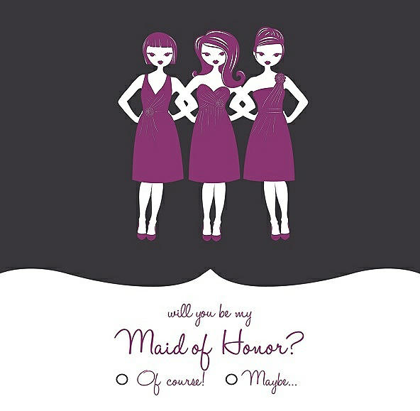 Will You Be My Maid of Honor Card - Girls Checkbox in Black & Persian Plum