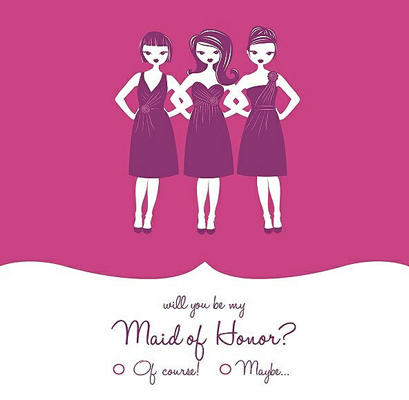 Will You Be My Maid of Honor Card - Girls Checkbox in Fuchsia & Persian Plum