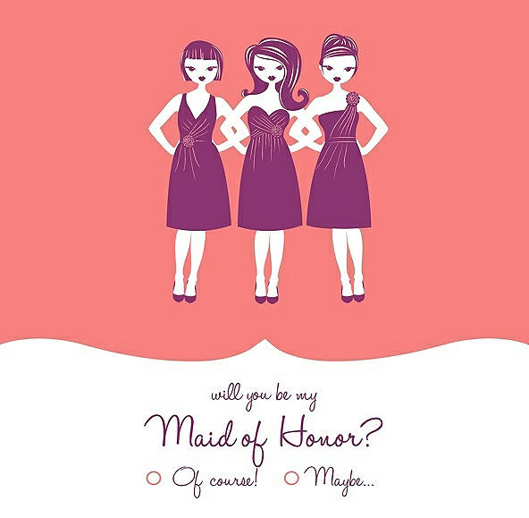 Will You Be My Maid of Honor Card - Girls Checkbox in Ginger & Persian Plum