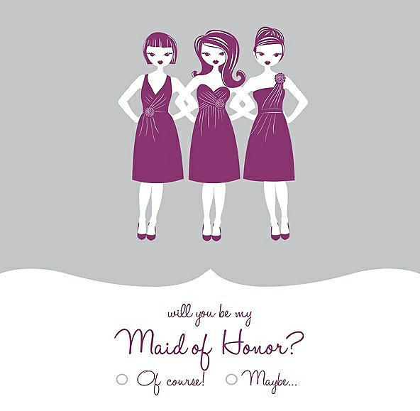 Will You Be My Maid of Honor Card - Girls Checkbox in Sterling & Persian Plum