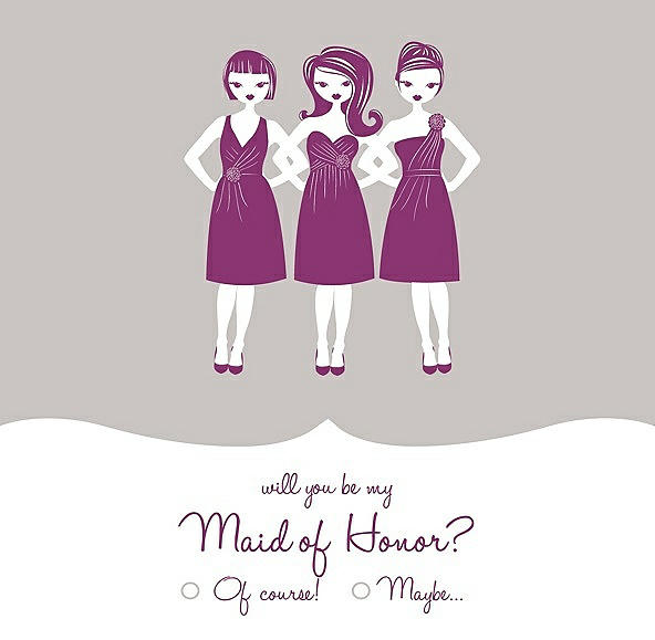 Will You Be My Maid of Honor Card - Girls Checkbox in Oyster & Persian Plum