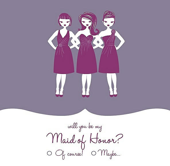 Will You Be My Maid of Honor Card - Girls Checkbox in Wisteria & Persian Plum
