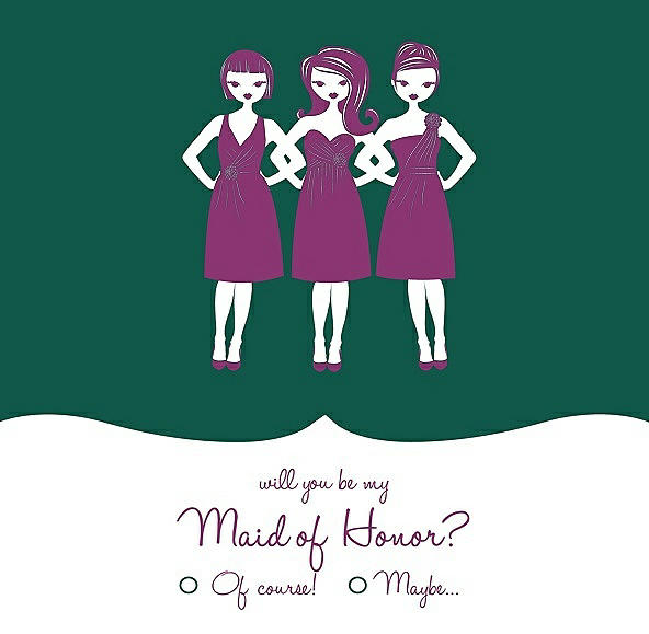 Will You Be My Maid of Honor Card - Girls Checkbox in Hunter Green & Persian Plum