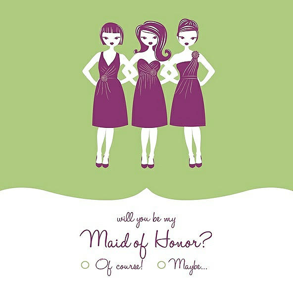 Will You Be My Maid of Honor Card - Girls Checkbox in Pistachio & Persian Plum