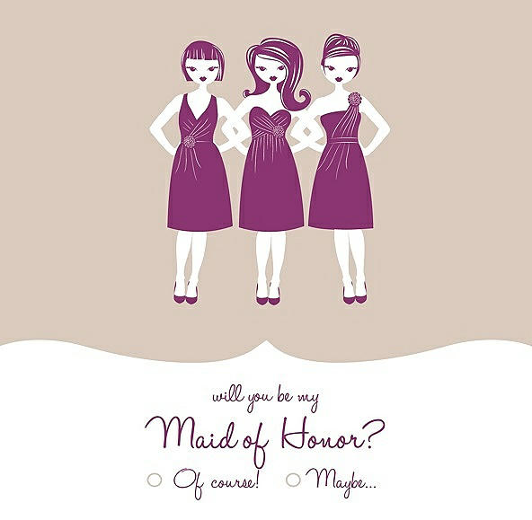 Will You Be My Maid of Honor Card - Girls Checkbox in Cameo & Persian Plum