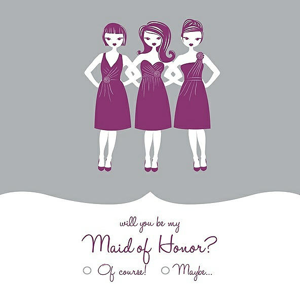 Will You Be My Maid of Honor Card - Girls Checkbox in Frost & Persian Plum