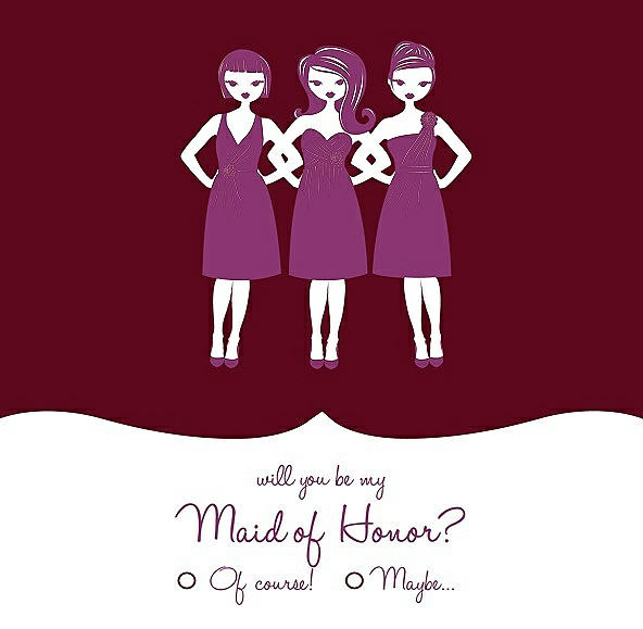 Will You Be My Maid of Honor Card - Girls Checkbox in Garnet & Persian Plum