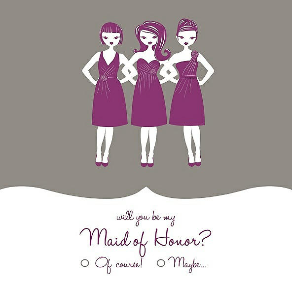 Will You Be My Maid of Honor Card - Girls Checkbox in Mocha & Persian Plum