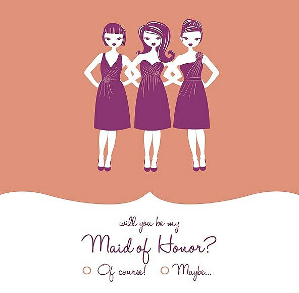 Will You Be My Maid of Honor Card - Girls Checkbox in Tangerine & Persian Plum