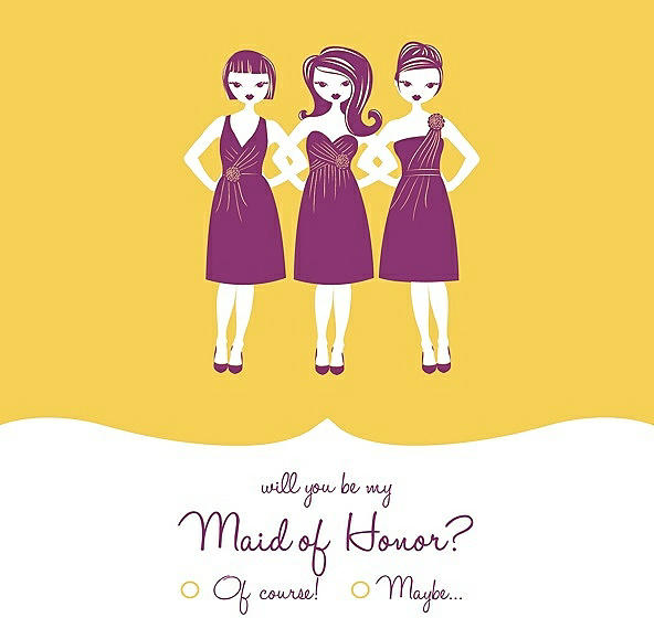 Will You Be My Maid of Honor Card - Girls Checkbox in Daisy & Persian Plum
