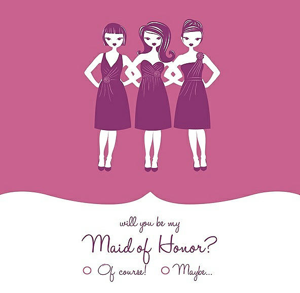 Will You Be My Maid of Honor Card - Girls Checkbox in Pretty In Pink & Persian Plum