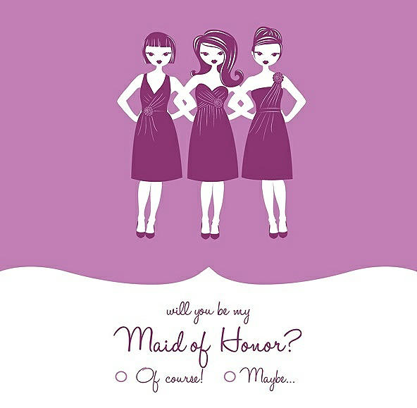 Will You Be My Maid of Honor Card - Girls Checkbox in Tulip & Persian Plum
