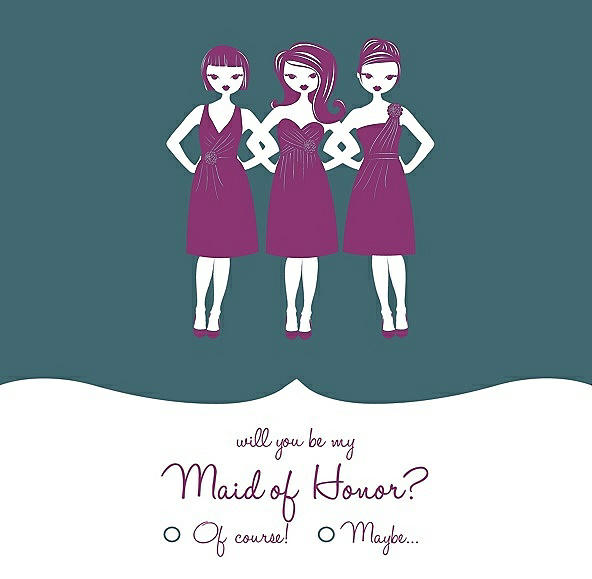 Will You Be My Maid of Honor Card - Girls Checkbox in Teal & Persian Plum