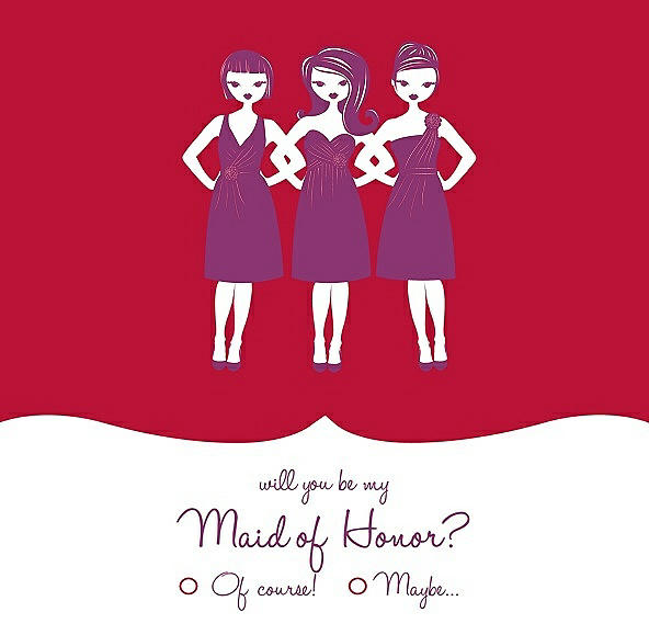 Will You Be My Maid of Honor Card - Girls Checkbox in Flame & Persian Plum