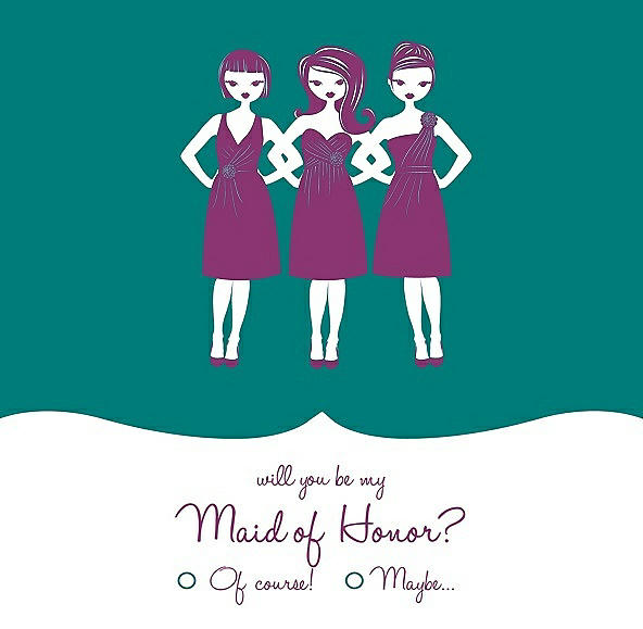 Will You Be My Maid of Honor Card - Girls Checkbox in Jade & Persian Plum