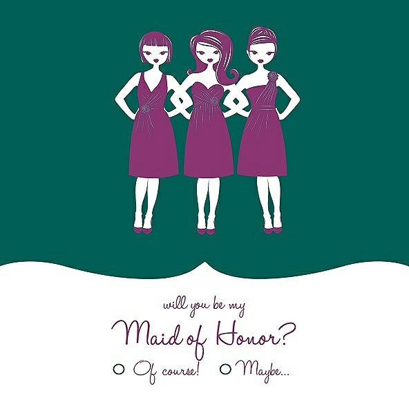 Will You Be My Maid of Honor Card - Girls Checkbox in Emerald & Persian Plum