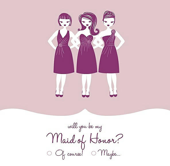 Will You Be My Maid of Honor Card - Girls Checkbox in Ice Pink & Persian Plum