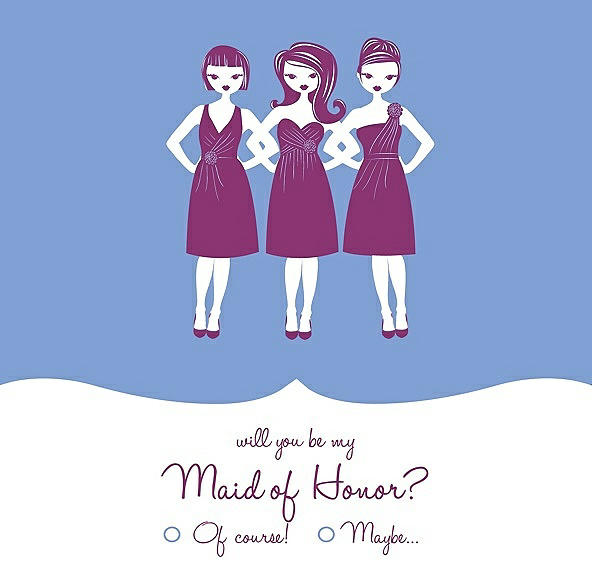 Will You Be My Maid of Honor Card - Girls Checkbox in Periwinkle - PANTONE Serenity & Persian Plum