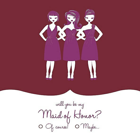 Will You Be My Maid of Honor Card - Girls Checkbox in Burgundy & Persian Plum