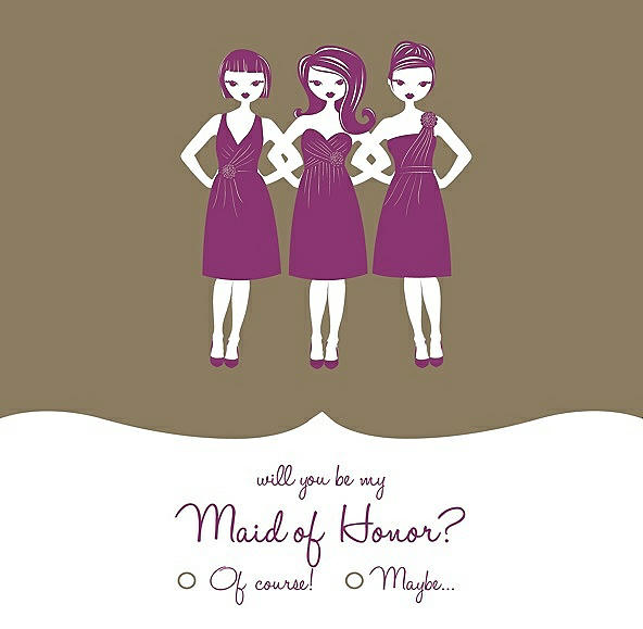 Will You Be My Maid of Honor Card - Girls Checkbox in Antique Gold & Persian Plum