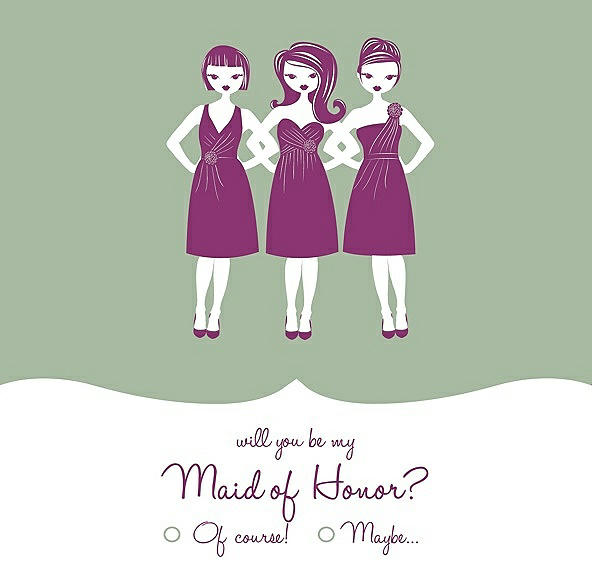 Will You Be My Maid of Honor Card - Girls Checkbox in Mermaid & Persian Plum